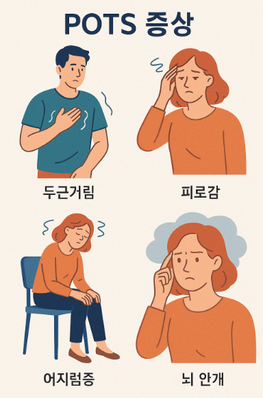 POTS는 일어선 뒤 10분 이내에 심박수가 비정상적으로 증가하는 상태를 의미합니다.